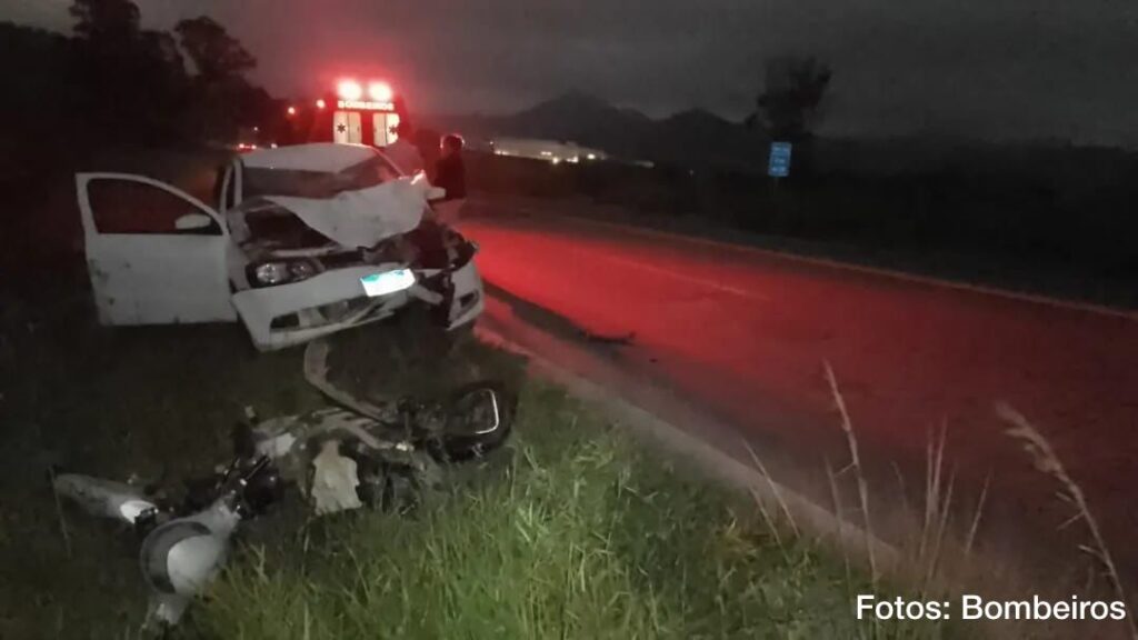 O acidente ocorreu por volta das 05:40h, do sábado, 14 de abril, pouco depois do trevo do Japi. Por causas que ainda serão esclarecidas pela Perícia Técnica da Polícia Civil, os dois veículos (carro e moto) que seguiam sentido Guaxupé/Juruaia, colidiram entre si, provocando a queda dos motociclistas que foram arremessados longe da motocicleta. A equipe de Resgate do 2º Pelotão de Bombeiros juntamente com a Equipe do Samu de GUAXUPÉ estiveram no local e prestaram atendimento as duas vítimas da motocicleta. Ambas foram transportadas ao Pronto Socorro de Guaxupé em estado gravíssimo (ferimentos generalizados pelo corpo e ambas em parada cardiorrespiratória), sendo uma das vítimas de idade aproximada entre 35 a 40 anos, transportada pelo SAMU e a outra com idade aproximada entre 27 e 30 anos, transportada pelo resgate do Corpo de Bombeiros. Posteriormente, o condutor do automóvel também precisou ser socorrido e foi transportado pelo Samu ao Pronto Socorro, aparentemente sem lesōes graves. Os dois ocupantes da motocicleta infelizmente não resistiram aos ferimentos e faleceram pouco depois. Um dos motociclistas era de Guaxupé e o outro de Juruaia e ambos eram funcionários do hospital de Juruaia para onde se deslocavam, para um deles assumir o plantão. A Perícia Técnica da Polícia Civil esteve no local e deverá investigar as causas do acidente. A PRF de Poços de Caldas esteve no local para providências cabíveis quanto ao trânsito e veículos.