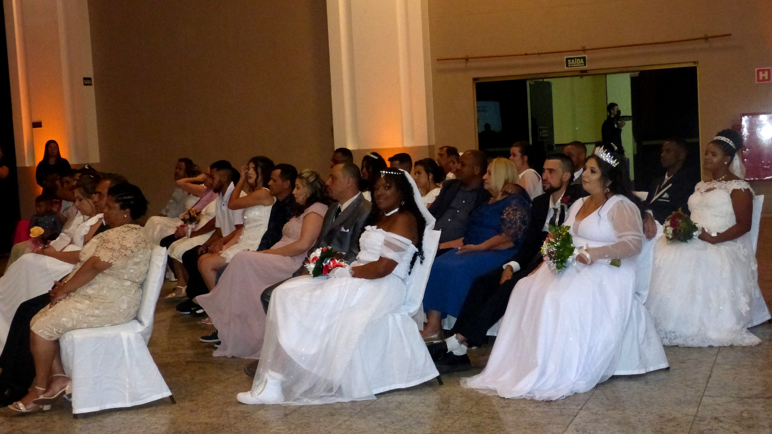 Marcha nupcial ao saxofone, decoração primorosa de flores, mesa de doces e fotos – muitas fotos. Casamentos são sempre lindos e emocionantes. Mas quando, em vez de um casal, são 36 casais de noivos dizendo sim ao mesmo tempo, a emoção se multiplica. Foi assim na 15ª edição do Casamento Coletivo, realizada na noite da quarta-feira (9), no Centro Nacional de Convenções (Cenacon).