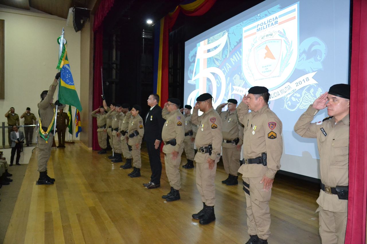 Durante a solenidade foram homenageados policiais da ativa e da reserva e lideranças que contribuíram com a segurança pública nos 15 municípios da área de abrangência do 43º BPM. Ainda foi conferida a militares a Medalha de Mérito Militar nas modalidades prata e bronze.