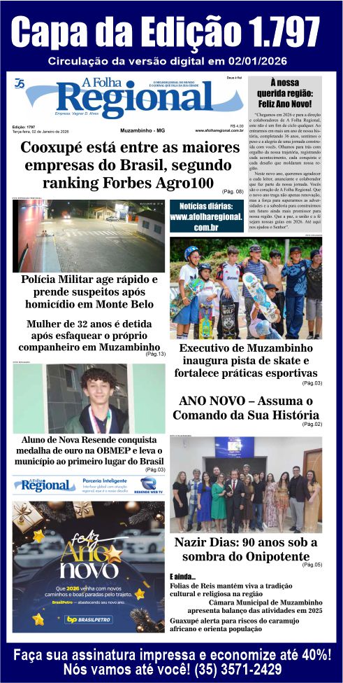 Em virtude de férias coletivas de sua equipe, A Folha Regional entra no ano 36 e circula EXCEPCIONALMENTE nesta semana no formato DIGITAL.