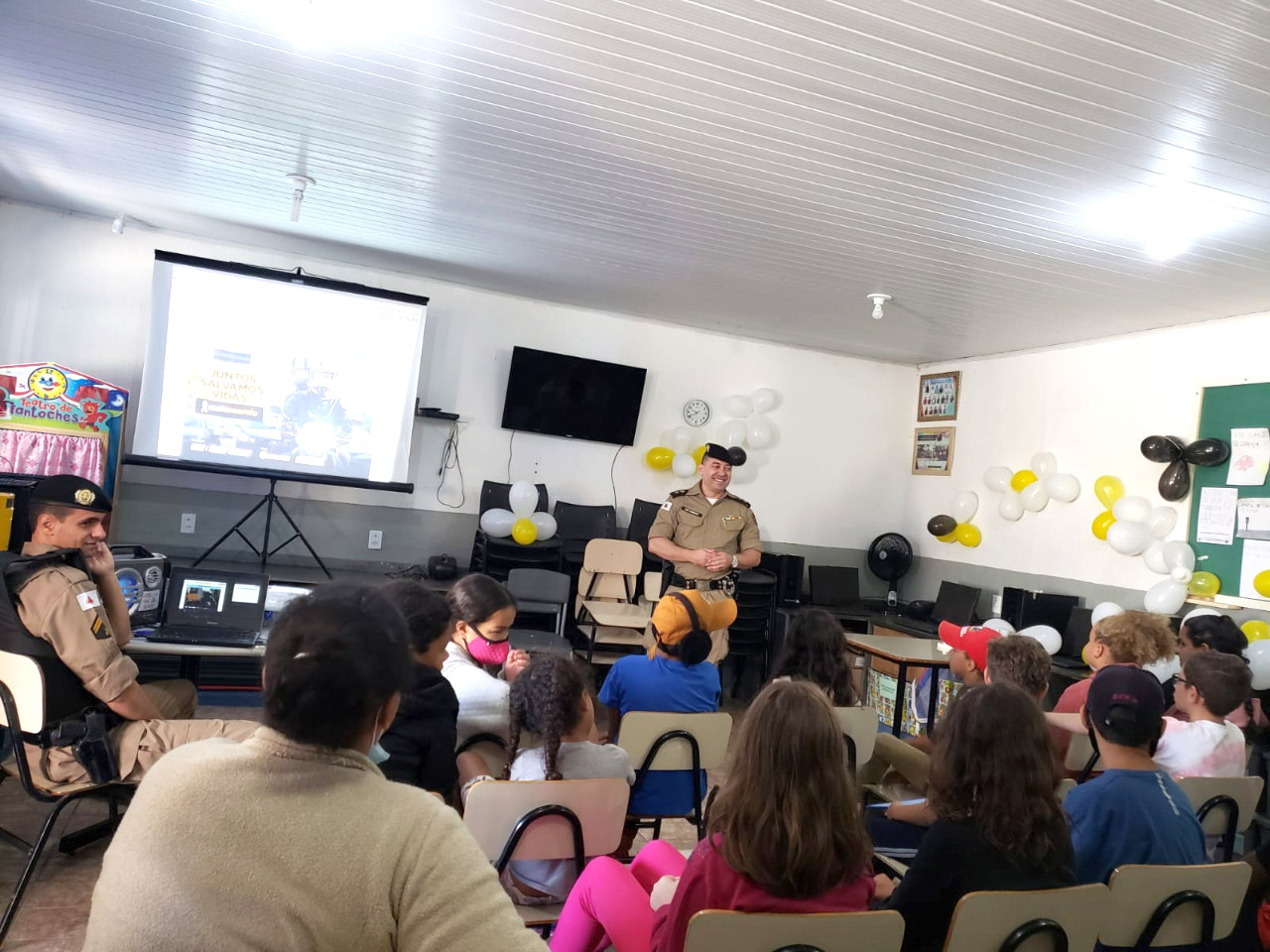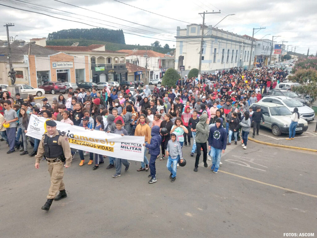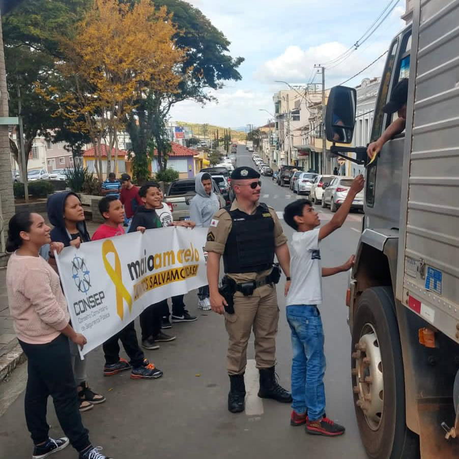 Com o tema do MAIO AMARELO: “JUNTOS SALVAMOS VIDAS! em Cabo Verde, a Polícia Militar realizou diversas ações durante todo o mês de maio, entre elas palestras nas E.M. Oscar Ornelas, no Distrito de São Bartolomeu, palestras nas E.E. Maj. Leonel e E.E. Prof. Pedro Saturnino de Magalhães, palestra na Mineradora Cabo Verde, além de ter sido realizada uma passeata educativa com os alunos das duas escolas e também uma Blitz Educativa com os alunos da E.E. Maj. Leonel.