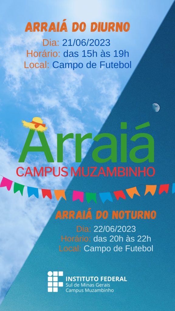 Nos dias 21 e 22 de junho de 2023, o IFSULDEMINAS – Campus Muzambinho realizará o “Arraiá do Campus Muzambinho”. A festança contemplará os estudantes do diurno e noturno.