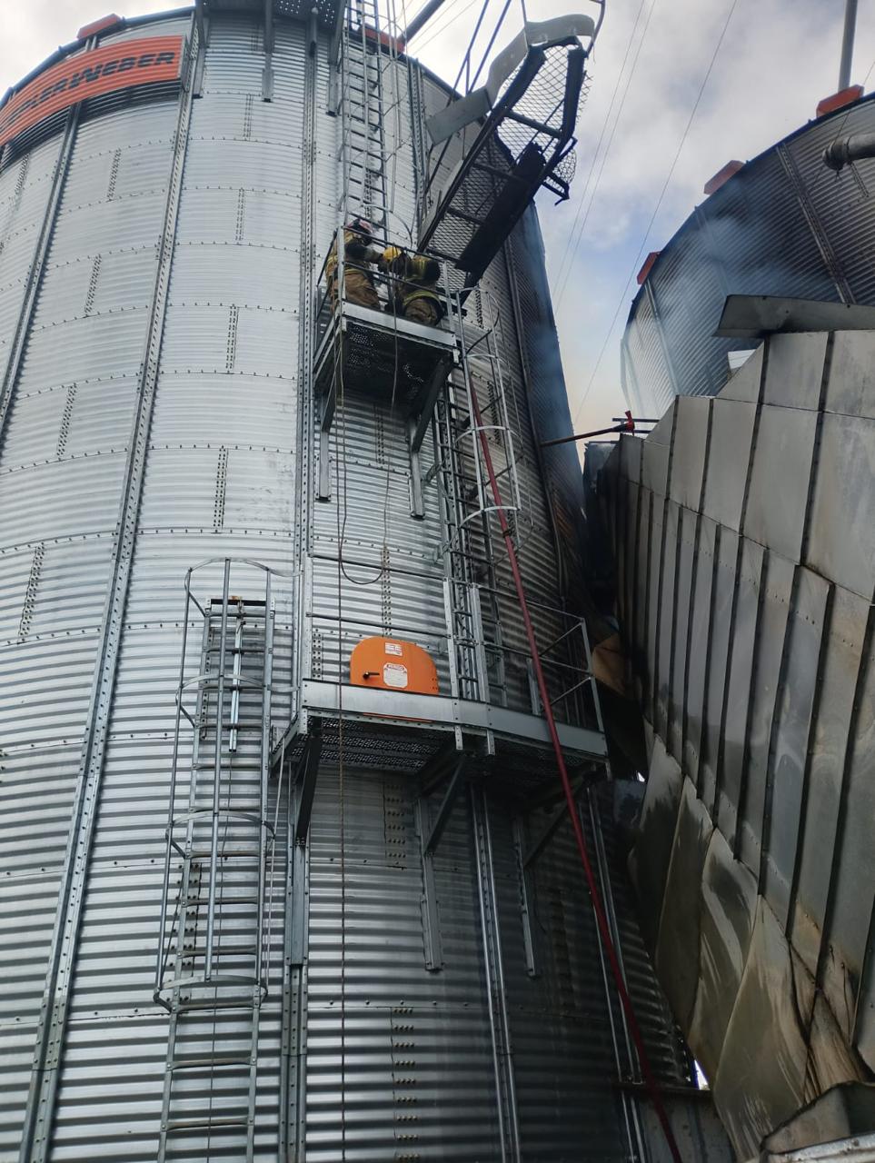 Resfriamento contínuo do silo adjacente, medida decisiva para impedir a propagação do incêndio e preservar parte da estrutura.