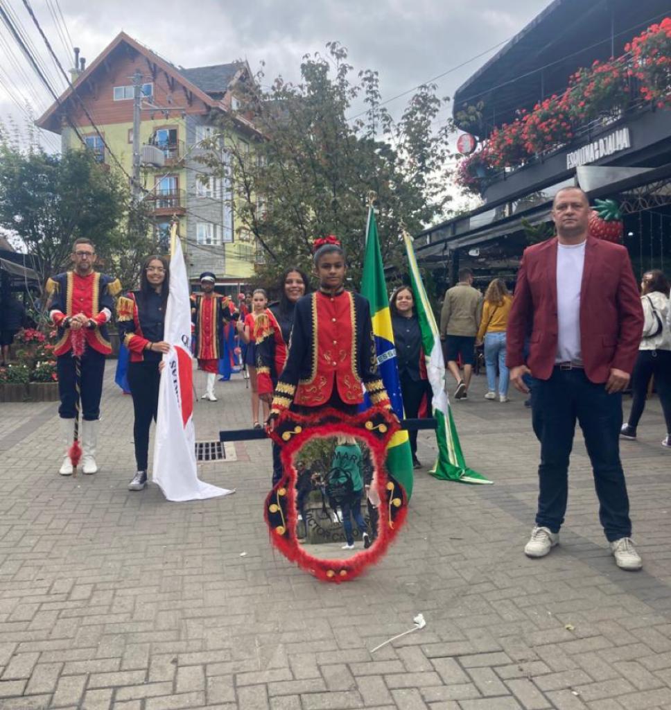 Poços de Caldas- A Banda Marcial Victor Cardinalli da Escola Municipal Edir Frahya participou, no domingo (23), da 6ª Edição do Festival Dito Nunes de Bandas e Fanfarras de Campos do Jordão, na Praça São Benedito, no Capivari.