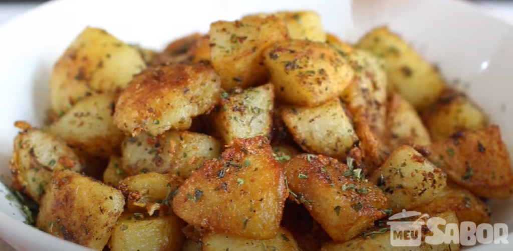 - Aqueça o óleo até ficar bem quente, salteie as batatas, mexendo de vez em quando para que fique dourada de