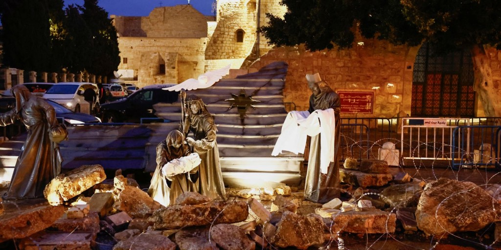 No lugar do habitual presépio, as igrejas de Belém neste ano colocaram as representações em meio a escombros e arame farpado, em solidariedade às pessoas da Faixa de Gaza.