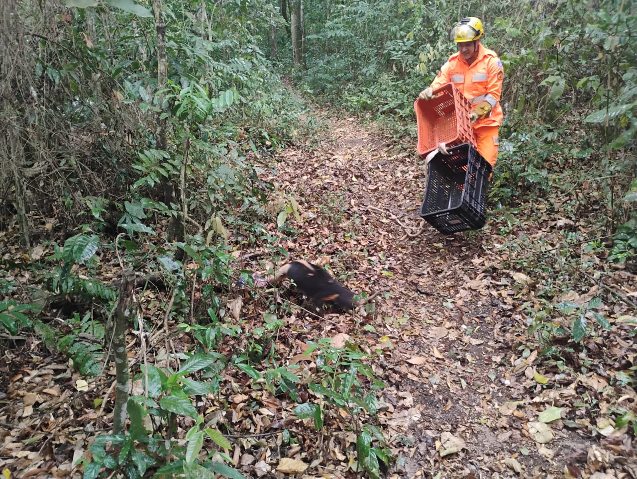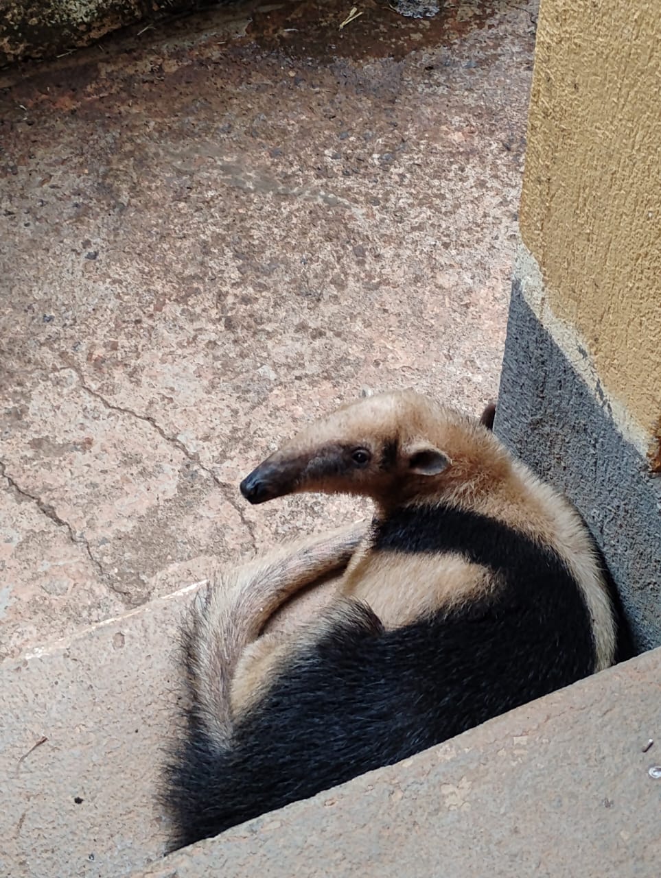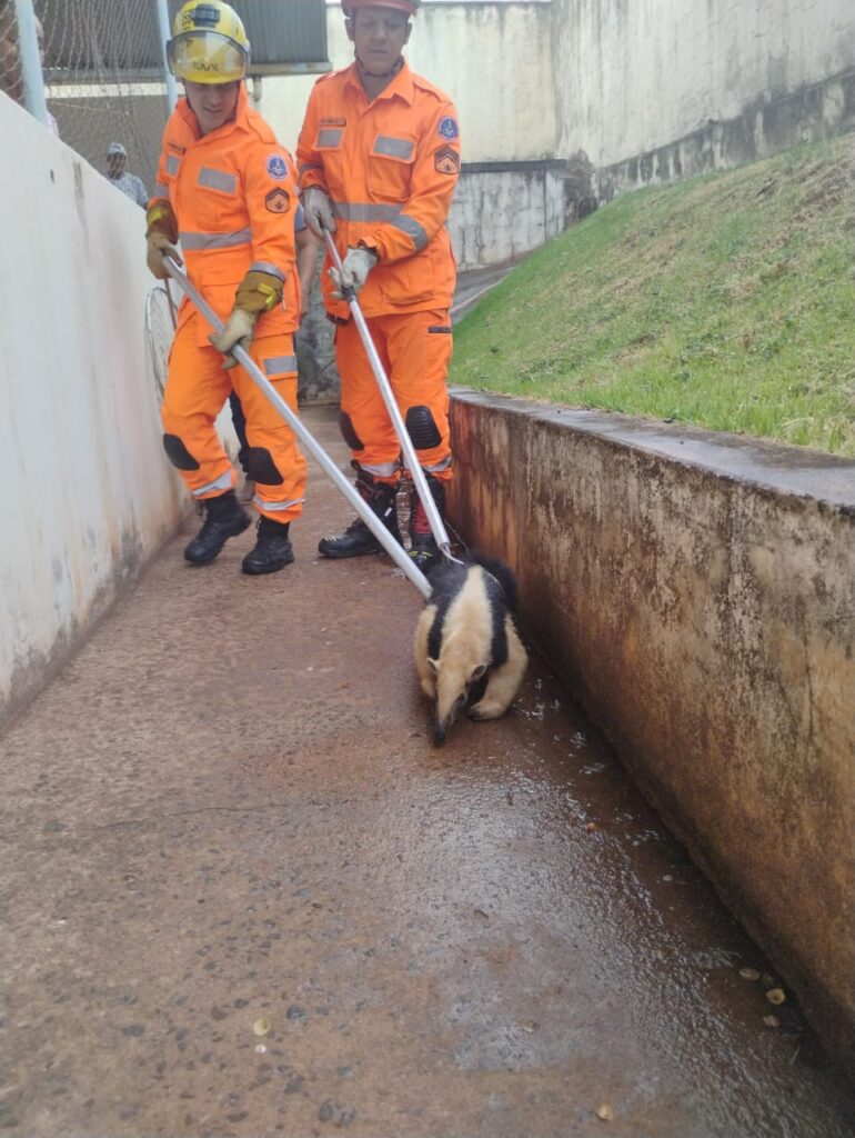Com o apoio da Defesa Civil do município, o tamanduá foi conduzido à mata ciliar na região e devolvido a seu habitat.
