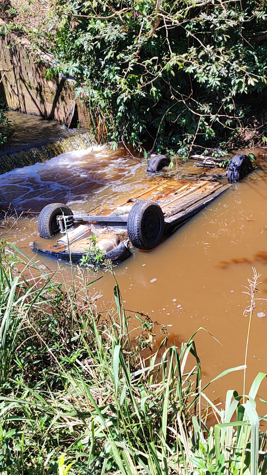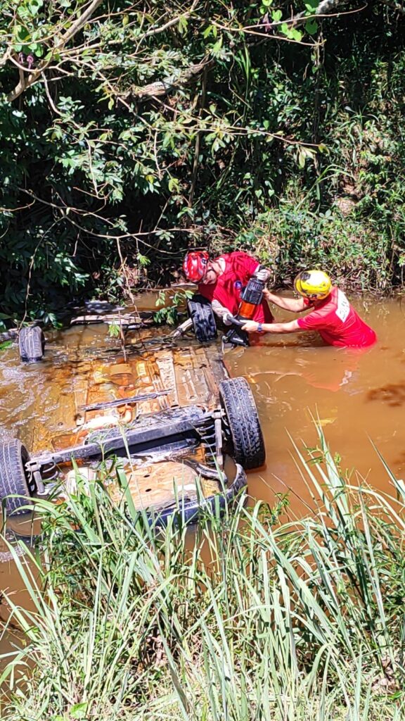 De acordo com informações repassadas ao serviço de emergência, o automóvel encontrava-se totalmente submerso, sendo visíveis apenas as rodas acima da lâmina d’água. Ao chegar ao local, a guarnição confirmou a situação, constatando que apenas as quatro rodas e parte do assoalho permaneciam acima da superfície.