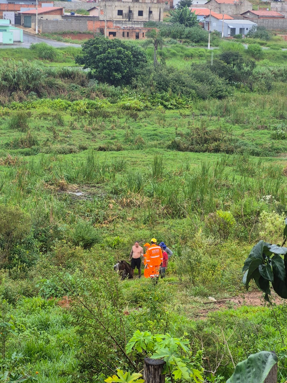 Na manhã da quarta-feira (08), o Corpo de Bombeiros foi acionado para salvamento de animal em uma área de brejo, no bairro Jardim América, em Guaxupé.