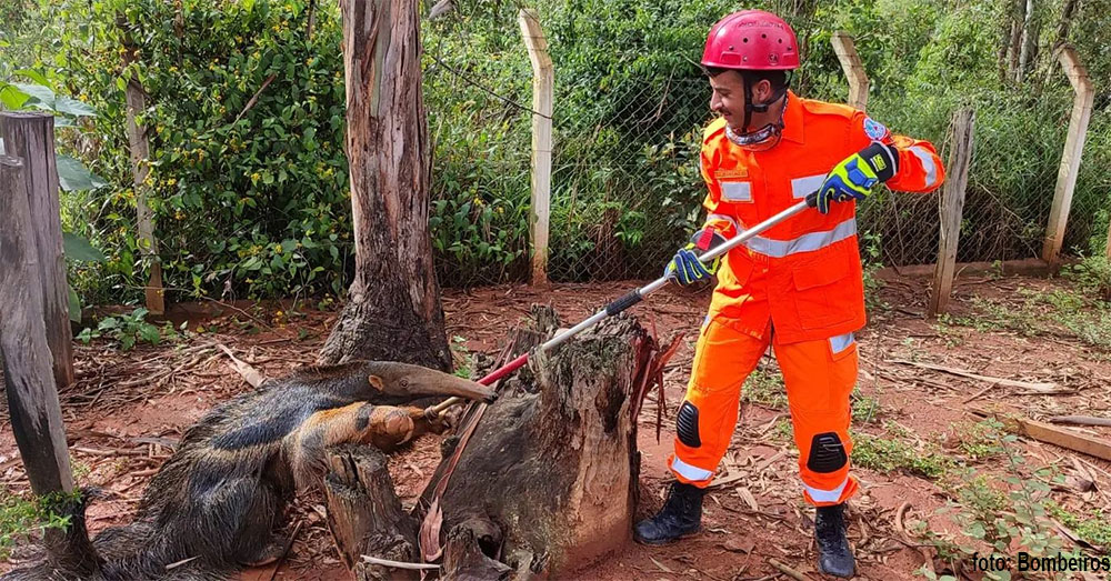 A equipe de Salvamento Terrestre do 2º Pelotão de bombeiros de Guaxupé foi acionada por volta das 15:30h da segunda-feira, 13/02, para resgate de um Tamanduá Bandeira, no Sítio Santa Maria, município de Muzambinho. O animal havia entrado em um galinheiro e foi necessário utilizar um câmbão para retirada do Tamanduá em segurança. Logo após, o animal foi solto nas imediações, em seu habitat natural.
