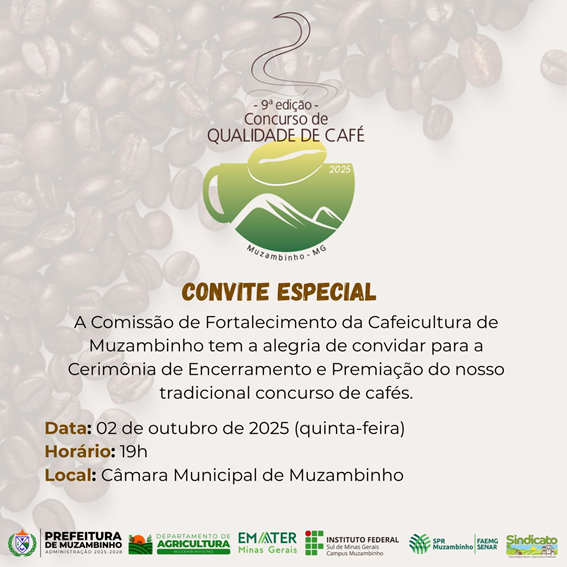 A atual administração municipal também reforça a importância da iniciativa. Segundo o Executivo, os cafés que chegam a esta edição representam o que há de melhor na produção local, fruto do trabalho de famílias comprometidas com a excelência: “Os grãos que saem das nossas propriedades comprovam que Muzambinho é referência. Mais do que um concurso, este projeto mostra que nossos cafés são de alta qualidade”, disse o prefeito Paulinho Magalhães.