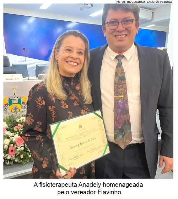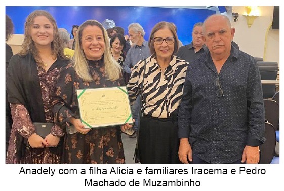 Em destaque, a profissional Anadely Aparecida Silva, acompanhada de familiares de Muzambinho que recebeu o Certificado de Homenagem das mãos do vereador Flavinho de Lima e Silva.