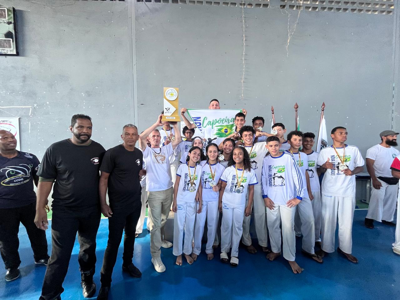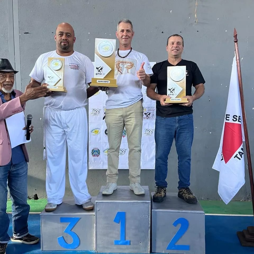 O pódio “Capoeira que te quero… Olímpica” ficou assim: 1° lugar, Equipe Nova Liberdade (Lavras); 2° lugar, equipe Biriba de Ouro (Nazareno) e 3° lugar, equipe Corpo em Movimento (Lavras).