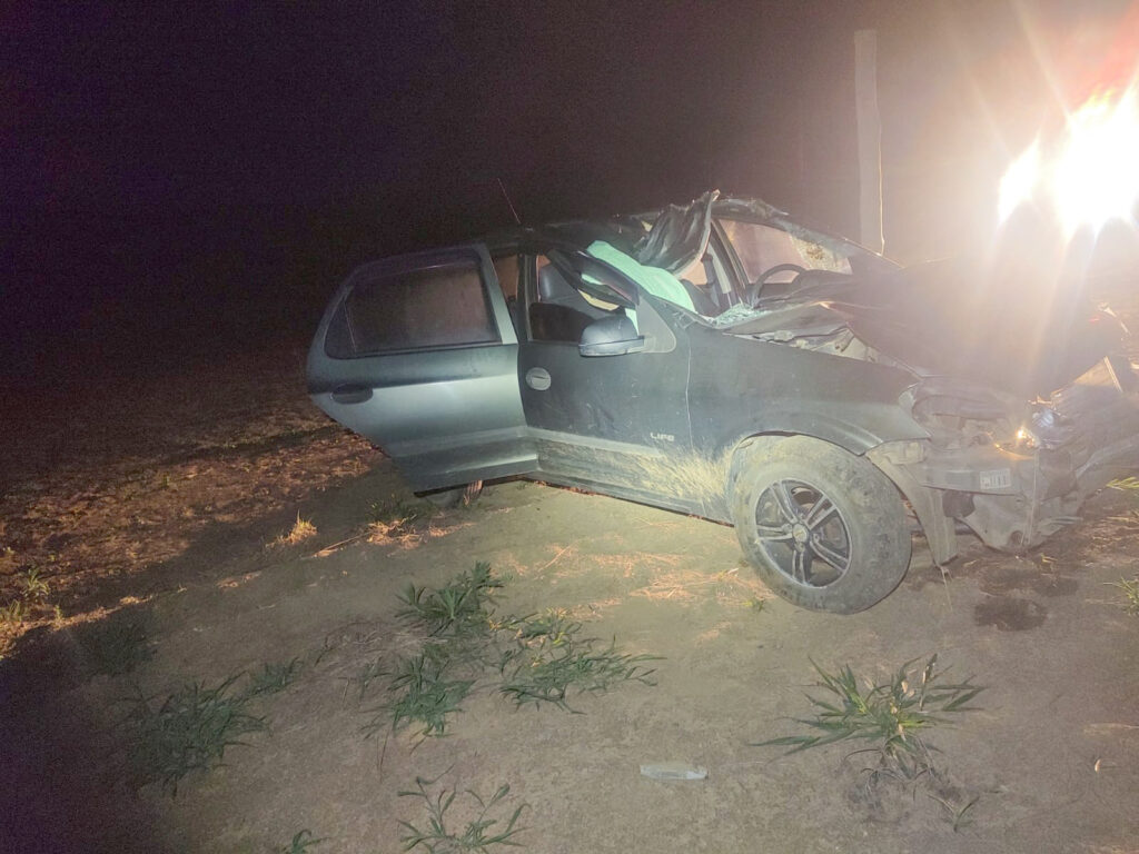 Durante as diligências, os militares localizaram, fora da pista de rolamento e a aproximadamente 150 metros do ponto inicial do impacto, um veículo GM/Celta, de cor verde, com danos significativos decorrentes da colisão.