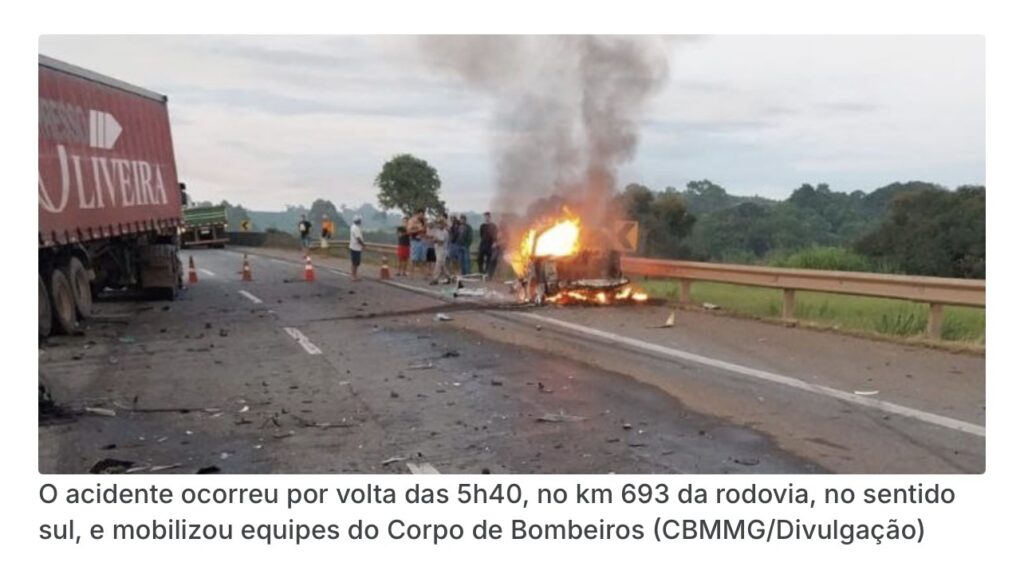 A ocorrência contou com o apoio da Polícia Rodoviária Federal, da concessionária Arteris, da Polícia Civil de Minas Gerais e da Funerária Carvalho.
