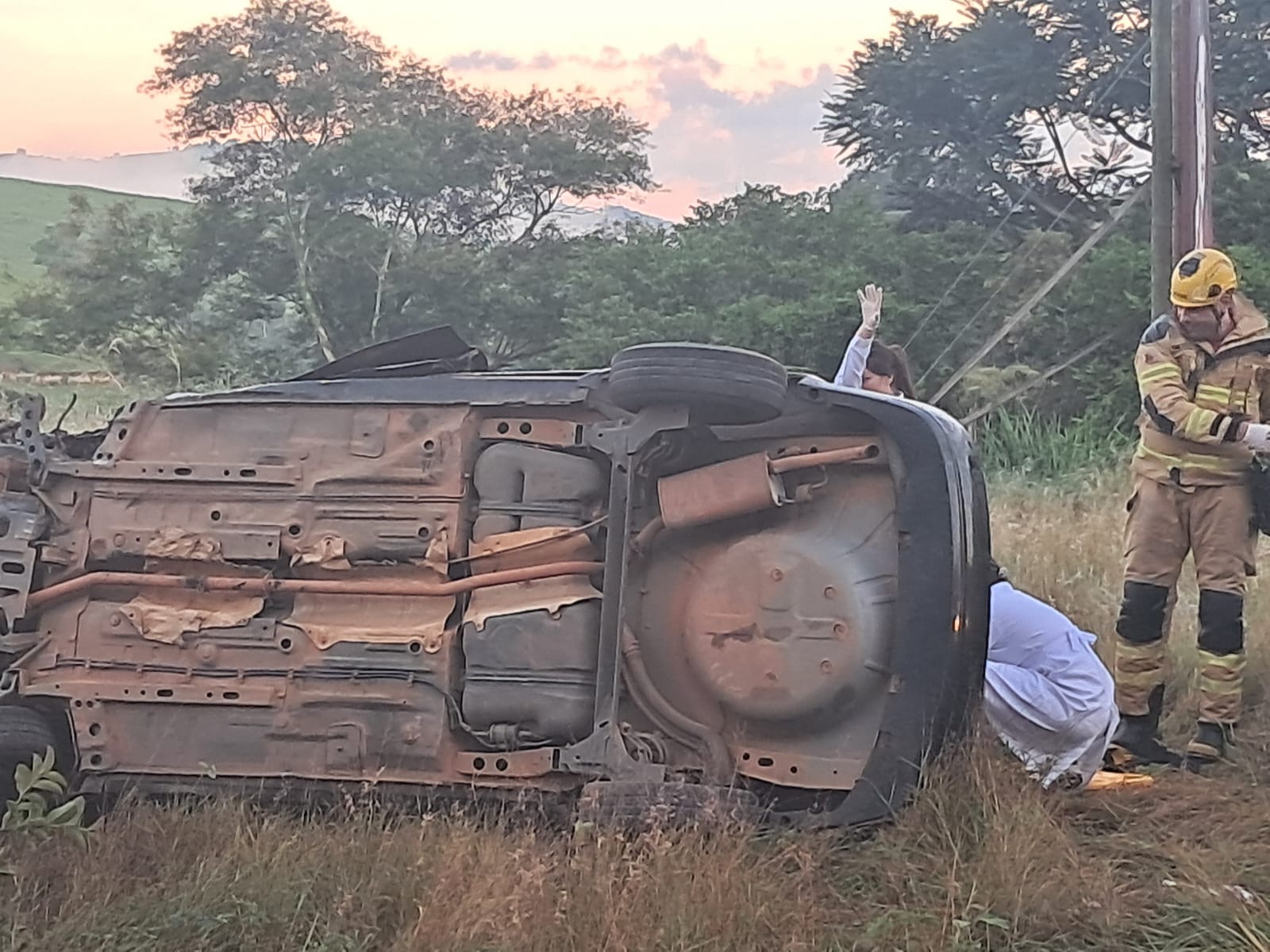 Durante o atendimento, uma das vítimas ficou presa às ferragens, sendo necessária a aplicação de técnicas de desencarceramento pela equipe de bombeiros para sua retirada com segurança.