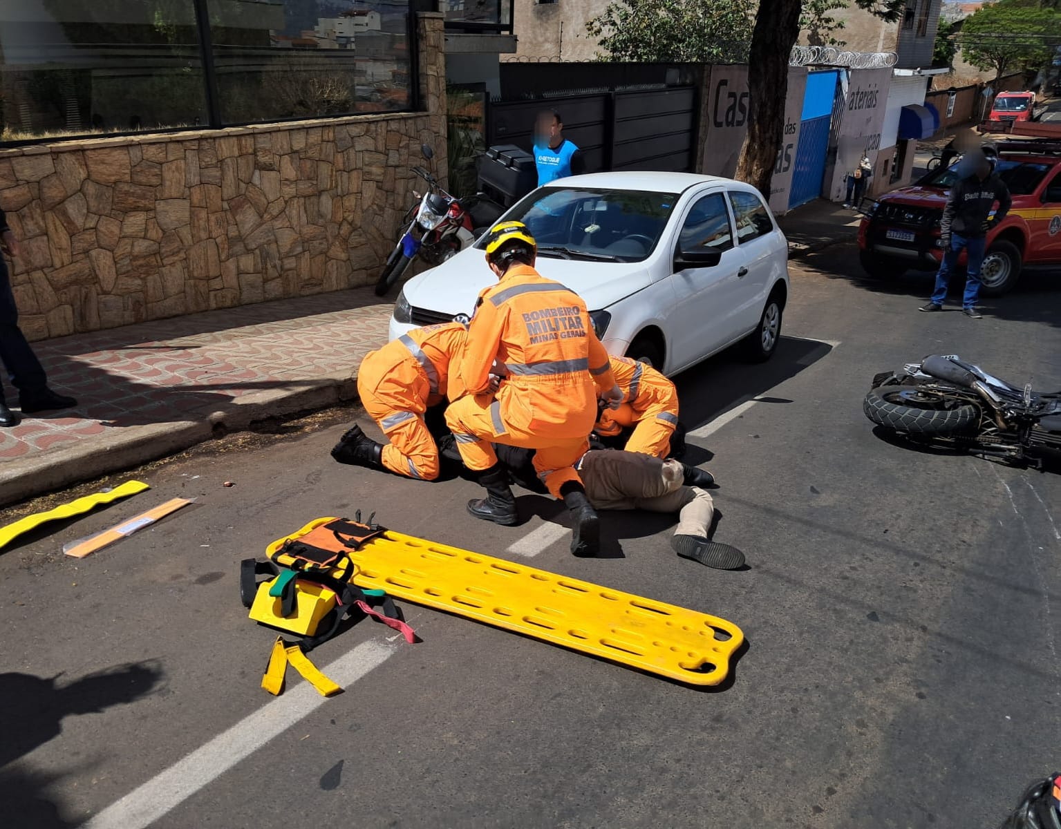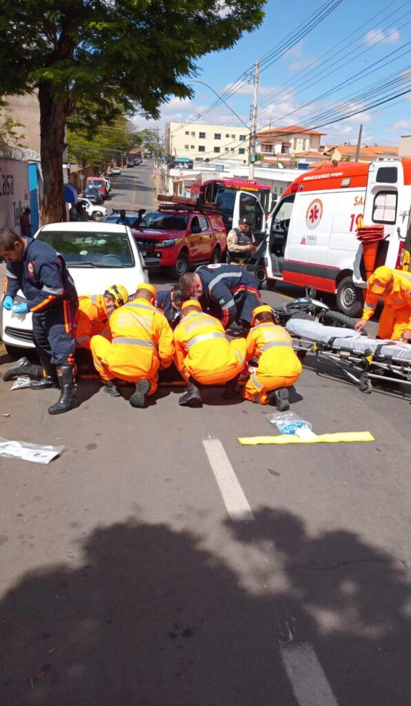 Com o impacto, o motociclista, um homem, foi arremessado ao solo e sofreu fratura exposta na perna. O atendimento rápido e criterioso foi realizado pelas equipes de resgate no local.
