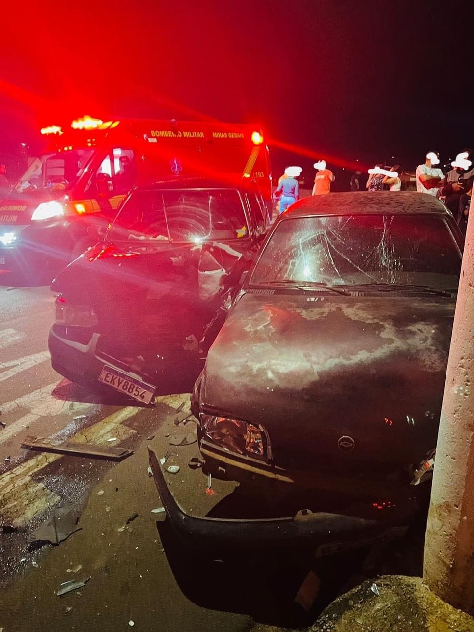 Uma guarnição de resgate do 2º Pelotão de Bombeiros de Guaxupé chegando a local encontrou dois veículos que colidiram entre si e contra um poste da rede elétrica.