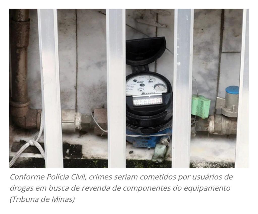 Em 2022, Juiz de Fora registrou 163 casos de furto de hidrômetros na cidade, de acordo com dados da Cesama. O número foi 6,3% abaixo do observado em 2021, quando houve 174 ocorrências do tipo, mas ainda chama a atenção pela excentricidade do problema, já que o material não possui alto valor de mercado. De acordo com a Polícia Civil, esses furtos geralmente são cometidos por usuários de drogas, que buscam revender o plástico e o cobre contidos no hidrômetro. (Tribuna de Minas – Juiz de Fora)