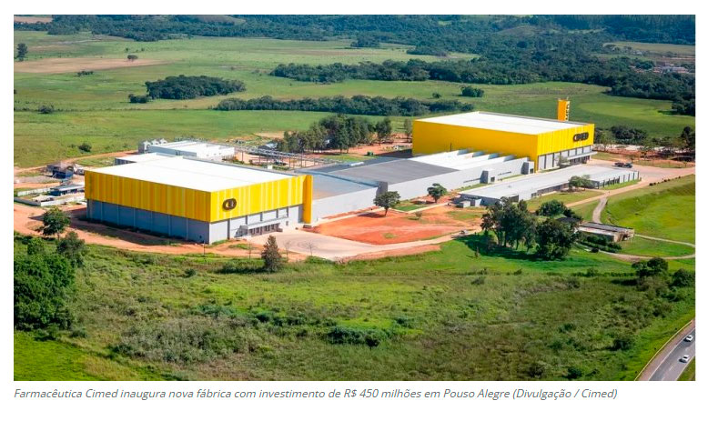 Com a presença do Governador Romeu Zema e autoridades estaduais e municipais, foi inaugurada nesta semana a segunda unidade da fábrica da farmacêutica Cimed em Pouso Alegre. Com investimentos de R$ 450 milhões, a unidade proporcionará um aumento de 130% da capacidade de produção de sólidos orais, chegando a 60 milhões de unidades por mês, especialmente de genéricos, gerando um crescimento neste segmento de até 35%. (Diário Regional – Pouso Alegre)
