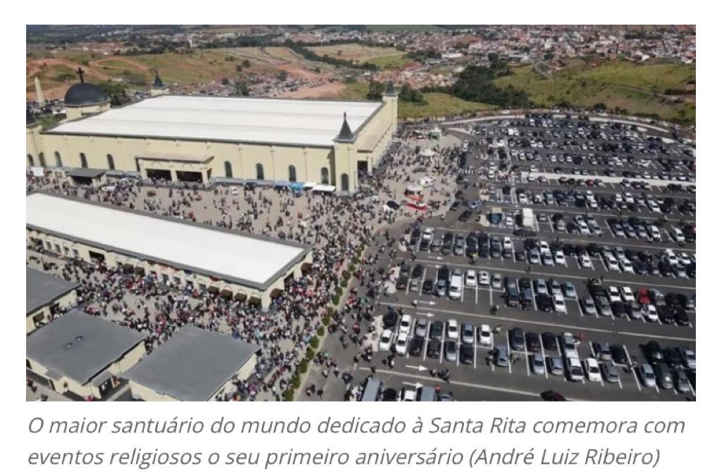 O Santuário de Santa Rita de Cássia, em Cássia-MG, inicia neste sábado as comemorações do seu primeiro ano de existência, e a celebração promete ser emocionante. Desde a sua inauguração, em maio de 2022, o Santuário, maior do mundo dedicado à Santa, tem acolhido inúmeros peregrinos e propagado a devoção à Santa Rita, a padroeira das causas impossíveis. Tem início neste sábado, 13, a novena de Santa Rita de Cássia realizada pelo Santuário em Cássia. A novena acontece até o dia 21 deste mês e, no dia 22, Dia de Santa Rita de Cássia, será realizada a Missa das Rosas, às 10h, com a celebração do bispo da diocese de Guaxupé. (Folha da Manhã – Passos)