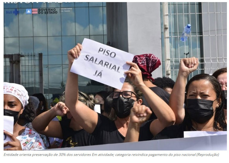 O Sindicato dos Servidores Públicos Municipais de Juiz de Fora (Sinserpu) confirmou a paralisação de profissionais da enfermagem contratados pela Prefeitura, nesta terça-feira, 14. A categoria cobra o pagamento do piso salarial nacional da categoria e vai realizar uma manifestação em frente à Câmara Municipal, durante a manhã de terça. A entidade sindical assegurou que orientou os servidores a preservarem ao menos 30% do efetivo em atividade, como previsto em lei, além de ter comunicado o Executivo municipal e a Secretaria de Saúde. (Tribuna de Minas – Juiz de Fora)