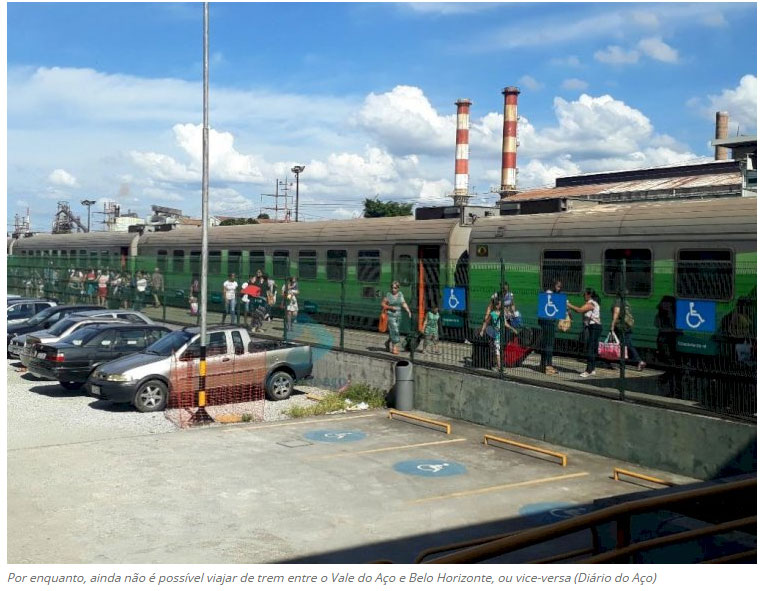 Há quase três meses o trem de passageiros da Estrada de Ferro Vitória a Minas está com a circulação suspensa entre Antônio Dias e Barão de Cocais, nos dois sentidos. Com isso, permanece impossível que os moradores do Vale do Aço viajem de trem para Belo Horizonte, ou vice-versa. A restrição foi anunciada no dia 19 de abril, por causa de uma erosão em um taludo à margem da Estrada de Ferro Vitória a Minas, em Antônio Dias. Como a BR-381 apresenta buracos, ondulações, obras paradas, trechos interditados em meia pista entre Ipatinga e Belo Horizonte, a viagem de trem seria uma alternativa mais segura. A situação tem gerado reclamações por parte de pessoas que precisam percorrer o trecho entre a capital e o Vale do Aço. (Diário do Aço – Ipatinga)