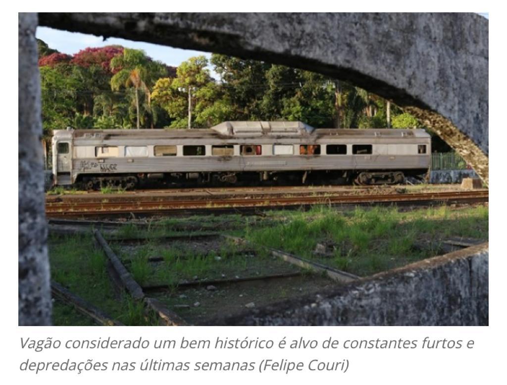 Já se passaram quase 25 anos desde a última viagem do famoso “Trem de Prata”, que era conhecido por interligar as cidades do Rio de Janeiro e São Paulo. Desde então, as litorinas automotrizes pararam de operar definitivamente e tiveram sua propriedade transferida para o Departamento Nacional de Infraestrutura (Dnit). Uma delas foi deslocada para a Estação Ferroviária Mariano Procópio, em Juiz de Fora, onde permanece há cinco anos. A situação de abandono em que se encontra a litorina automotriz, entretanto, tem feito com que o vagão, considerado um bem histórico, seja alvo de constantes furtos e depredações nas últimas semanas. (Tribuna de Minas – Juiz de Fora)
