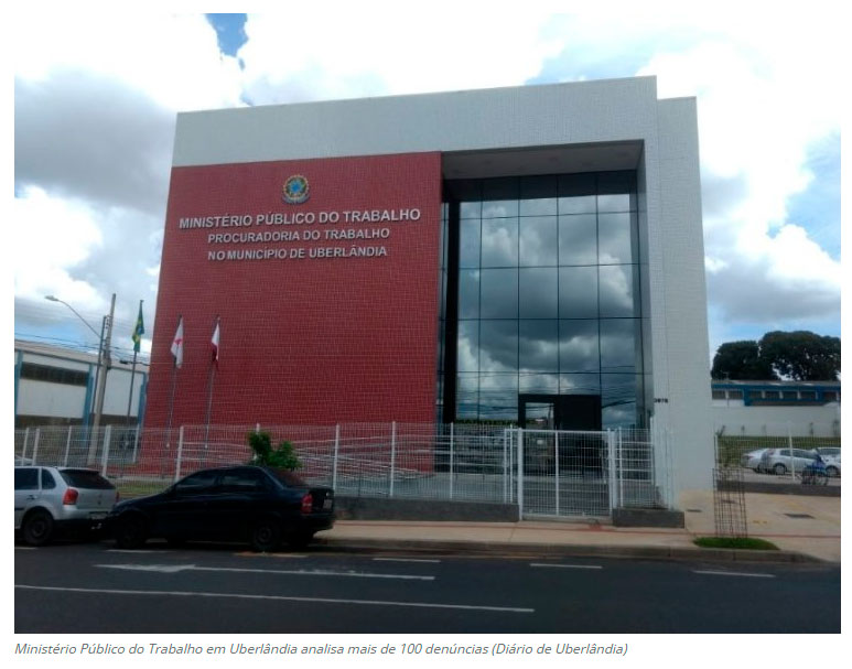 O Ministério Público do Trabalho (MPT) registrou, nos primeiros quatro meses do ano, mais de 100 denúncias de irregularidades no ambiente de trabalho na cidade de Uberlândia. Os números já atingidos em 2023 representam quase metade do total acumulado nos doze meses de 2022, período em que foram registradas 266 reclamações. Em 2022, Minas Gerais foi o segundo estado com o maior índice de irregularidades, com um total de 1.990 denúncias. As queixas variam de acidente típico ou por equiparação, falta de equipamentos de proteção individual (EPI) ou coletiva (EPC), ergonomia, condições sanitárias e de conforto nos locais de trabalho e outros. (Diário de Uberlândia)