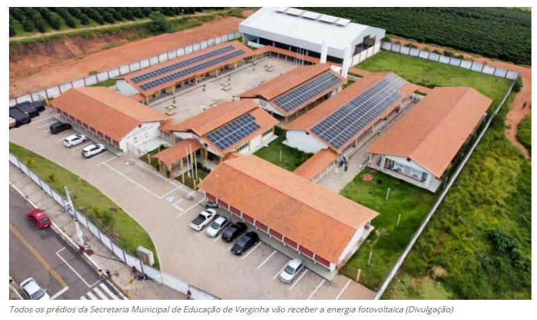 Começou a operar nessa semana a primeira Usina Solar da Prefeitura de Varginha, por meio da Secretaria de Educação. As placas fotovoltaicas foram instaladas na Escola Municipal Wanderlei Bueno de Oliveira. Com potência de 97 KWp, em seus 222 módulos fotovoltaicos, a Usina tem capacidade para gerar 12.000 Kwh, o que corresponde a 25 % do consumo total de energia da Secretaria de Educação. Segundo o coordenador do projeto, Pedro Gazzola, outras cinco usinas, de um total de 25, já estão em fase de conclusão das obras. (Blog do Madeira – Varginha)