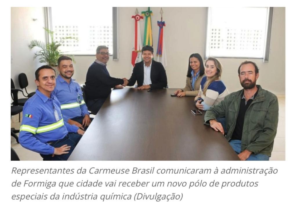 O prefeito Eugênio Vilela recebeu a equipe de gestão executiva da empresa Carmeuse Brasil, líder global em materiais e serviços de inovação com competências centrais em equipamentos de mineração, processamento de materiais e soluções de engenharia. Na ocasião, o diretor executivo, Carlos Avelar; a gerente de operações, Rosiene Pimenta, e outros membros da equipe anunciaram o prefeito o investimento de 50 milhões de dólares que será implantado em Formiga e proporcionará, aproximadamente, 200 empregos diretos e indiretos na linha de produção de alta tecnologia e performance na área de mineração, indústria química, celulose e papel, tratamento de água, dissecantes e SoilA. (Últimas Notícias – Formiga)