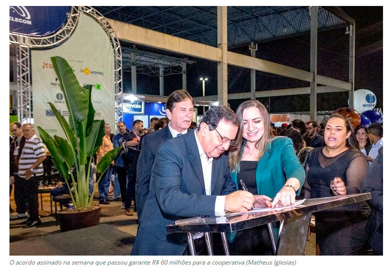 O presidente da Cooperativa Agropecuária Vale do Rio Doce, João Marques, e a superintendente do Banco do Nordeste em Minas Gerais e Espírito Santo, Clébia Torres, assinaram uma Carta de Intenção de Empréstimos na noite de quarta-feira (17), na abertura da 19 Expoleste. O acordo garante mais de R$ 60 milhões à Cooperativa. A empresa usará o recurso para financiar parte da construção de uma nova unidade fabril dos produtos Ibituruna. A nova fábrica ficará no bairro Capim, onde funcionou por muitos anos a Santher. (Diário do Rio Doce – Governador Valadares)
