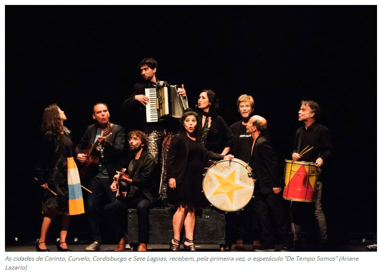 Uma das companhias de teatro mais importantes do Brasil, o Grupo Galpão, que celebra seus 40 anos, ganha as ruas, espaços culturais e praças de cidades mineiras com “De Tempo Somos – um sarau do Grupo Galpão”, espetáculo apresentado como um sarau de músicas e poesias, com direção das atrizes Lydia Del Picchia e Simone Ordones. No dia 20 de setembro, o Grupo Galpão chega a Corinto; no dia 21 de setembro, Curvelo recebe o espetáculo, na Praça da Estação. Dia 23 de setembro será a vez de Cordisburgo. A turnê Sertão de Minas se encerra na cidade de Sete Lagoas, no dia 24 de setembro, às 19h, na Praça da Feirinha. Todas as apresentações são gratuitas. (Diário de Sete Lagoas)