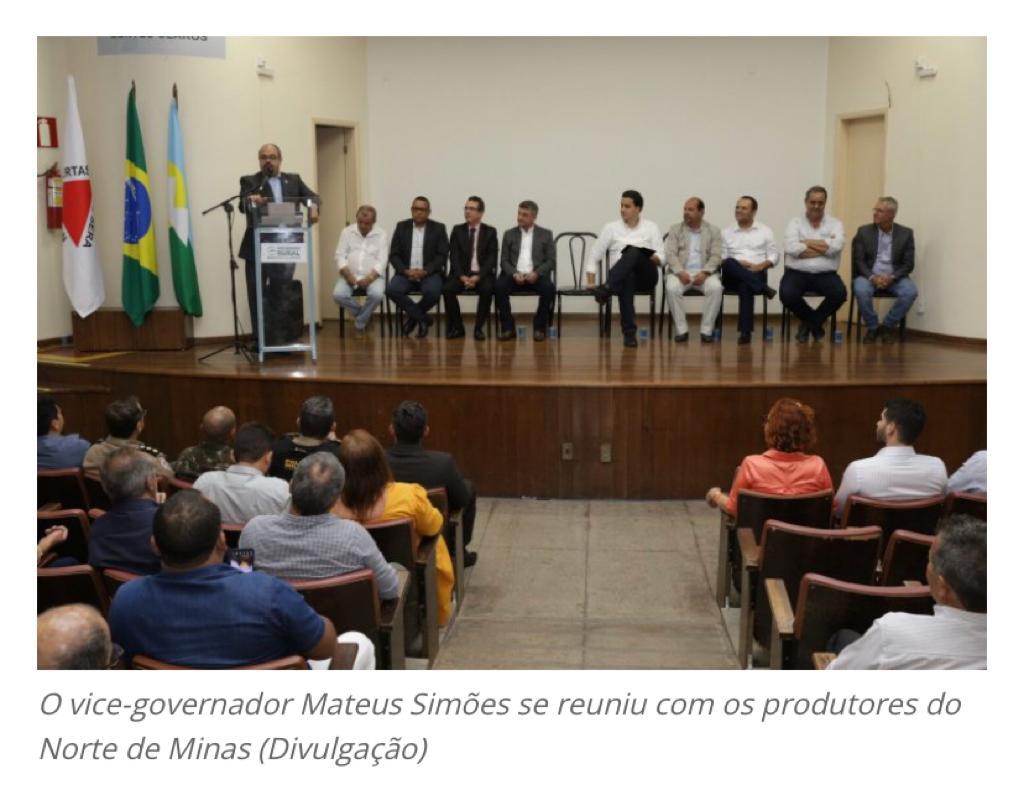 O vice-governador do Estado, Mateus Simões, esteve na Sociedade Rural de Montes Claros, na semana que passou. Ele recebeu das autoridades e diretores da entidade uma série de demandas do setor no Norte de Minas. No encontro, o Presidente da Sociedade Rural, José Moacyr Basso, destacou a importância do Governo do Estado em promover ações de valorização ao trabalho do homem do campo. Entre as reivindicações apresentadas estava a melhoria da BR-251, rodovia importante para o escoamento da produção da região. (Gazeta Norte Mineira – Montes Claros)