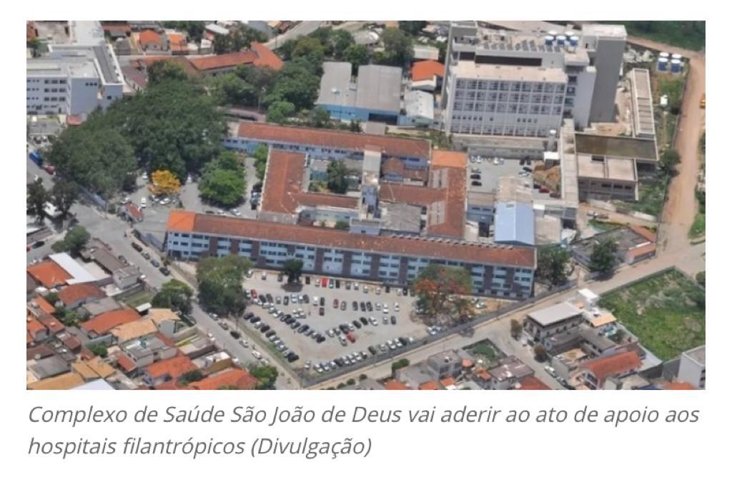 Em grave crise financeira, os hospitais filantrópicos do Brasil se uniram, através da Confederação das Santas Casas e Hospitais Filantrópicos (CMB), para cobrar medidas para lidar com a grave crise financeira enfrentada pelos setor filantrópico da saúde. Ao todo, são 1.824 hospitais filantrópicos no país. Um deles está justamente em Divinópolis, o Complexo de Saúde São João de Deus (CSSJD), referência para a Macrorregião Oeste. Para tentar reverter a crise, na próxima segunda-feira, 23, às 12h, as Santas Casas e Hospitais Filantrópicos de Minas Gerais farão um ato simbólico nas portas de suas instituições. O Complexo de Divinópolis manifestou apoio à campanha e também realizará a ação em seu estacionamento. (Jornal Agora – Divinópolis)
