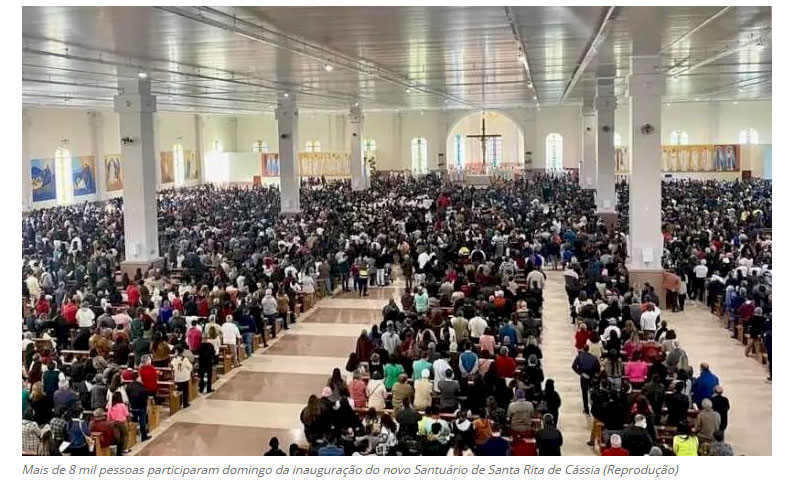 Ao participar, no último domingo, da cerimônia oficial de doação do santuário de Santa Rita de Cássia para a diocese de Guaxupé pelo empresário idealizador e investidor do santuário, Paulo Flávio de Melo Carvalho, o governador Romeu Zema disse que nesses três anos e cinco meses de sua gestão esse está sendo o maior presente que Minas Gerais está recebendo. Sediado na cidade de Cássia, o santuário tem 180 mil metros quadrados, sendo 100 mil de área construída. A capacidade é de 5 mil pessoas sentadas e 2 mil em pé. Na “Missa das Rosas”, no domingo, cerca de 10 mil pessoas participaram do evento. (Folha da Manhã – Passos)