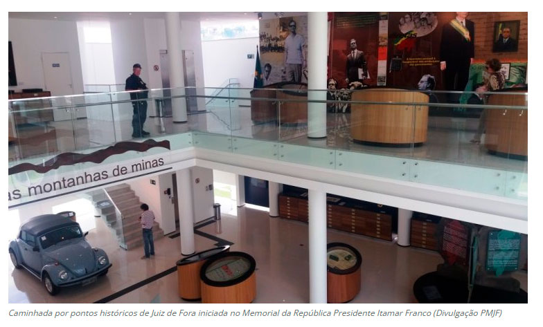 A Prefeitura de Juiz de Fora, durante esta semana, promove a “Caminhada pela história”: ação que realiza visitas guiadas a pontos turísticos históricos e naturais da cidade. No roteiro, estão o Memorial da República Presidente Itamar Franco, Jardim Botânico da Universidade Federal de Juiz de Fora, Museu Mariano Procópio (Mapro) e o Museu Universitário Academia, com acervos de Etnologia Indígena e de História Natural. Toda a programação é gratuita. Com o intuito de apresentar um novo olhar sobre a história da cidade e seus patrimônios, os passeios serão acompanhados por profissionais da Secretaria de Turismo (Setur). (Tribuna de Minas – Juiz de Fora)