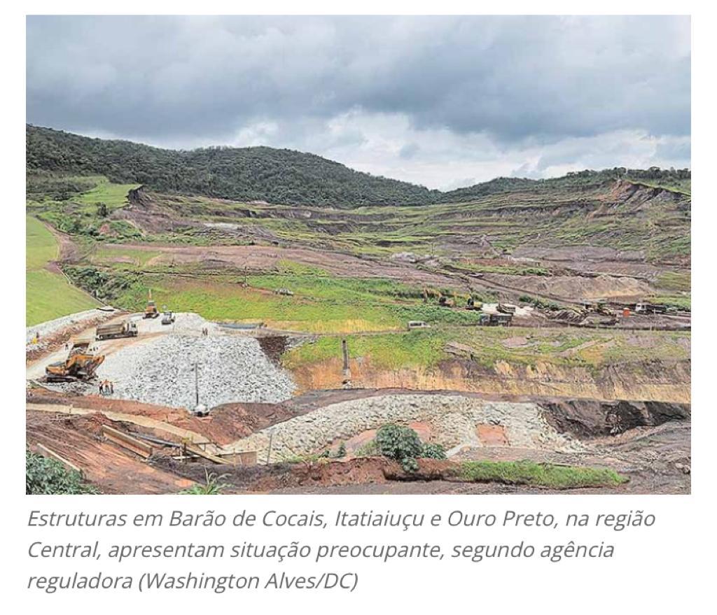 Com as chuvas que predominam sobre o Estado de Minas Gerais nos últimos dias, a Defesa Civil de Minas Gerais tem avaliado criteriosamente as medidas de monitoramento de barragens de minério. Diante dos temporais que têm atingido as cidades pelo País, dentro de um recorte nacional, a Agência Nacional de Mineração (ANM) jáidentificou 75 barragens de mineração com nível de emergência.  Delas, 20 estão em nível de alerta, sendo 12 situadas somente em Minas Gerais. Deste grupo, a situação mais preocupante é a das barragens situadas nos municípios de Barão de Cocais, Itatiaiuçu e Ouro Preto, na região Central do Estado. Nas três cidades, as estruturas estão classificadas em nível três, que éo mais agravante na mineração. (Diário do Comércio – Belo Horizonte)