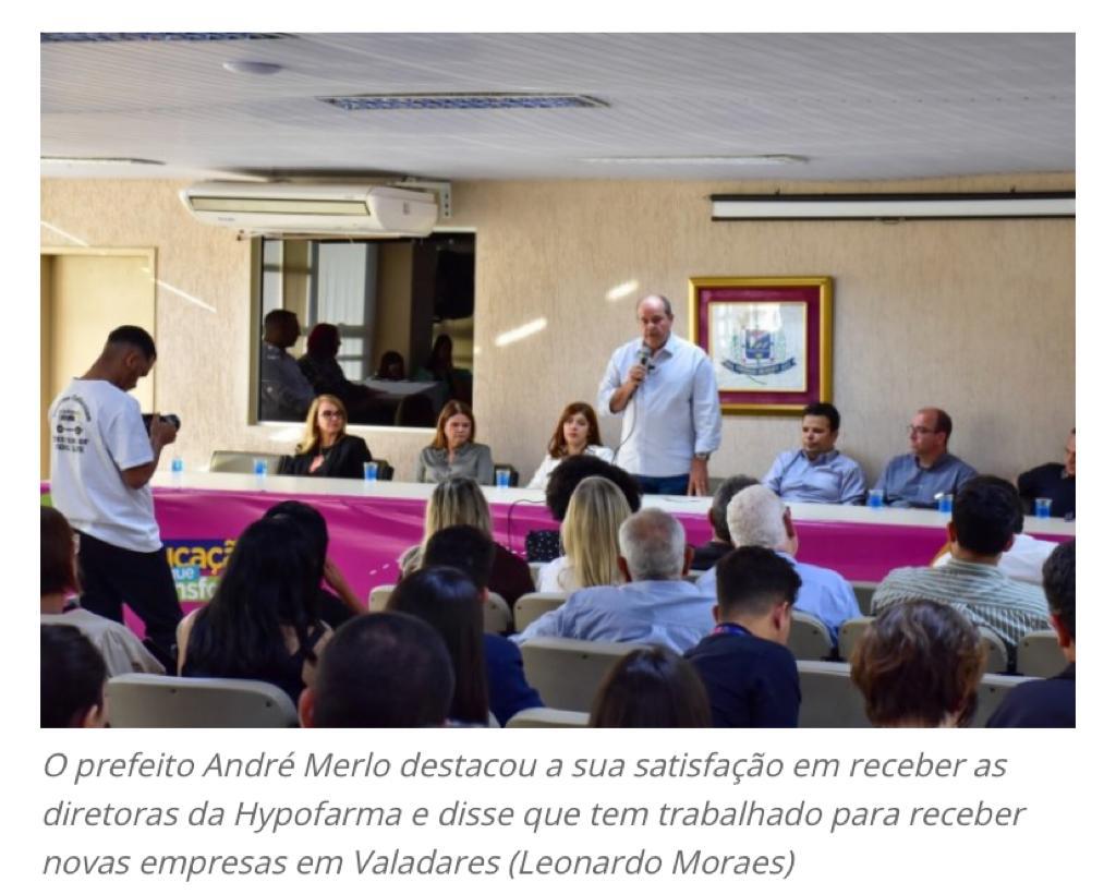 As diretoras corporativas e proprietárias da Hypofarma, Giana Marcellini e Gina Marcellini, juntamente com o prefeito André Merlo, assinaram na quarta-feira (24/8) o Protocolo Conjunto de Intenções para a instalação da indústria em Governador Valadares. Esse é o primeiro passo para que a cidade seja contemplada com uma fábrica da indústria farmacêutica especializada na produção e distribuição de medicamentos injetáveis. A visita e assinatura do protocolo só foram oficializadas após integração da cidade na área da Sudene. O projeto de instalação da indústria é divido em duas fases. Na primeira, estão previstos investimentos entorno de R$ 10 milhões e contratação de 100 pessoas. (Jornal da Cidade – Governador Valadares)