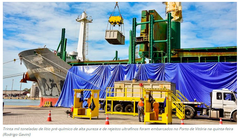 A empresa Sigma Lithium realizou o primeiro embarque de materiais produzidos no Vale de Jequitinhonha. Saíram do Porto de Vitória (ES) rumo à China, 30 mil toneladas, sendo 15 mil de lítio pré-químico de alta pureza e a outra metade de rejeitos ultrafinos. O despacho foi efetuado para a chinesa Yahua. Essa foi a primeira exportação de lítio verde padrão triplo zero do mundo, considerado o mais elevado nível de sustentabilidade industrial na fabricação de insumos para baterias de veículos elétricos. A empresa já planeja construir uma quarta linha de produção no complexo Grota do Cirilo, localizado entre as cidades de Itinga e Araçuaí, no Vale do Jequitinhonha. (Diário do Comércio – Belo Horizonte)