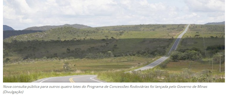 O Governo de Minas, por meio da Secretaria de Estado de Infraestrutura e Mobilidade (Seinfra), abriu consulta pública para o processo de concessão de outros quatro lotes do Programa de Concessão Rodoviárias. O projeto foi estruturado com o apoio do Banco Nacional de Desenvolvimento Econômico e Social (BNDES). Os quatro lotes somam, aproximadamente, 1.500 quilômetros de extensão. As vias estão localizadas entre Varginha e Furnas (432,8 km), São João Del Rei (452 km), Lagoa da Prata e Itapecerica (442,9 km), e entre Arcos e Patos de Minas (231,3 km). (Diário do Comércio – Belo Horizonte)