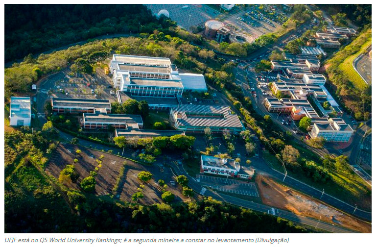 A Universidade Federal de Juiz de Fora alcançou, pela segunda vez, o QS World University Rankings, figurando como a 18ª melhor universidade do Brasil, entre as 35 colocadas do país. A Universidade de São Paulo foi classificada em primeiro lugar no Brasil e ficou na 85ª colocação mundial. Entre as universidades mineiras, a UFJF se destaca como segunda colocada, atrás apenas da Universidade Federal de Minas Gerais, eleita a melhor instituição de ensino superior de Minas. A Universidade Federal de Viçosa, a Pontifícia Universidade Católica de Minas Gerais e a Universidade. Federal de Uberlândia também aparecem no ranking do estado como terceira, quarta e quinta colocadas, respectivamente. (Tribuna de Minas – Juiz de Fora)