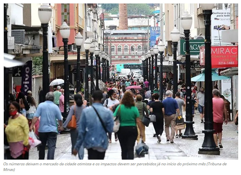 O pagamento do 13º salário deve injetar mais de R$ 395 milhões na economia de Juiz de Fora em 2022. Na cidade, aproximadamente 137.100 trabalhadores celetistas devem ser beneficiados, de acordo com dados mais recentes do Cadastro Geral de Empregados e Desempregados (Caged). O valor recebido fica em torno de R$ 2.886,91, considerando o salário médio do juiz-forano em 2021, previsto na Relação Anual de Informações Sociais (Rais). O montante, no entanto, deve ser ainda maior, visto que a estimativa não leva em conta o valor recebido pelos funcionalismo público juiz-forano. O Natal é a melhor data para o comércio, segundo Marcos Casarin, presidente da Câmara de Dirigentes Lojistas de Juiz de Fora. (Tribuna de Minas)