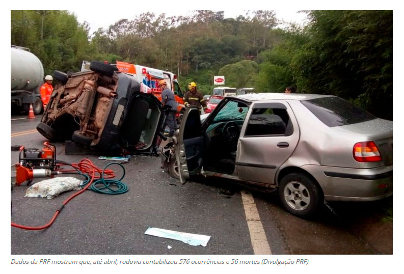 Umas das principais rodovias que cortam Minas Gerais, a BR-040 apresentou aumento de quase 10% no número de acidentes registrados nos quatro primeiros meses de 2023 em relação a igual período do ano passado. O trecho que passa pelo estado, de 830 quilômetros, contabilizou 576 acidentes e 56 óbitos até 30 de abril, enquanto no mesmo período em 2022 foram 525 ocorrências e 50 mortes, de acordo com o Observatório de Dados da Polícia Rodoviária Federal (PRF). Ambos os períodos indicam que a rodovia tem registrado uma morte a cada 10 acidentes. (Tribuna de Minas – Juiz de Fora)