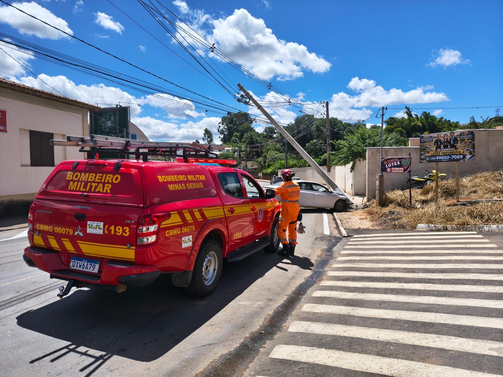 No começo da tarde do sábado (28), o 2° Pelotão de Bombeiros de Guaxupé foi acionado para atendimento à perigo de eletrocução, em função da queda de um poste, na Avenida Jeremias Zerbini.