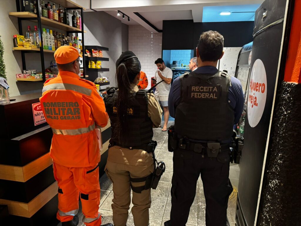 A equipe do Serviço de Segurança Contra Incêndio e Pânico da 1ª Companhia Independente integrou a operação conjunta com a Polícia Militar de Minas Gerais (PMMG), Receita Federal e Vigilância Sanitária, realizando fiscalização em seis estabelecimentos comerciais.