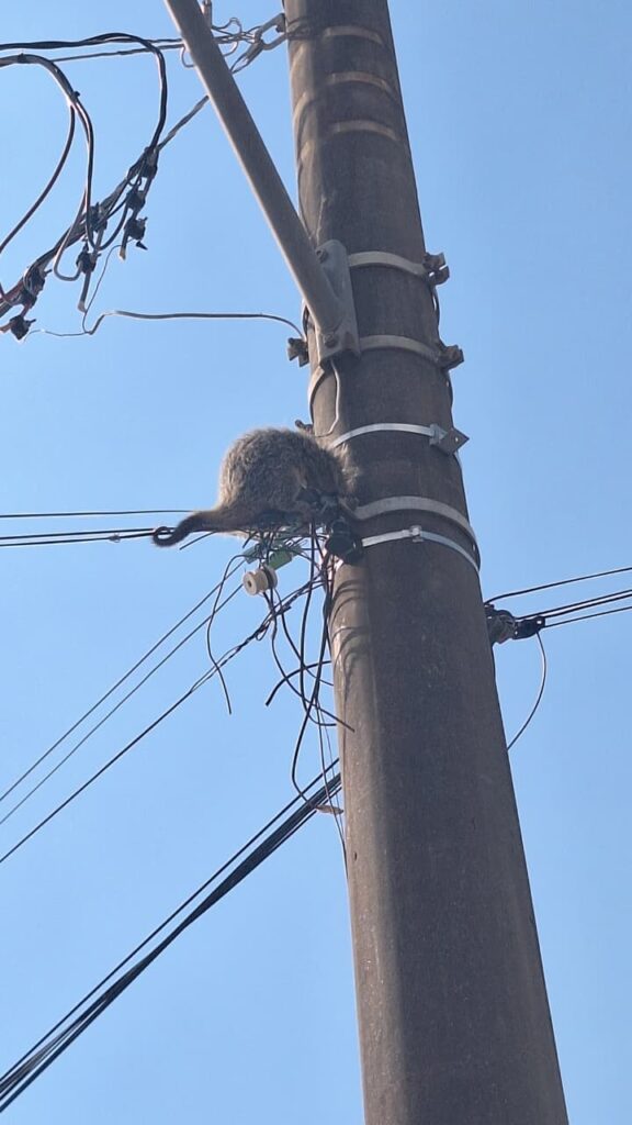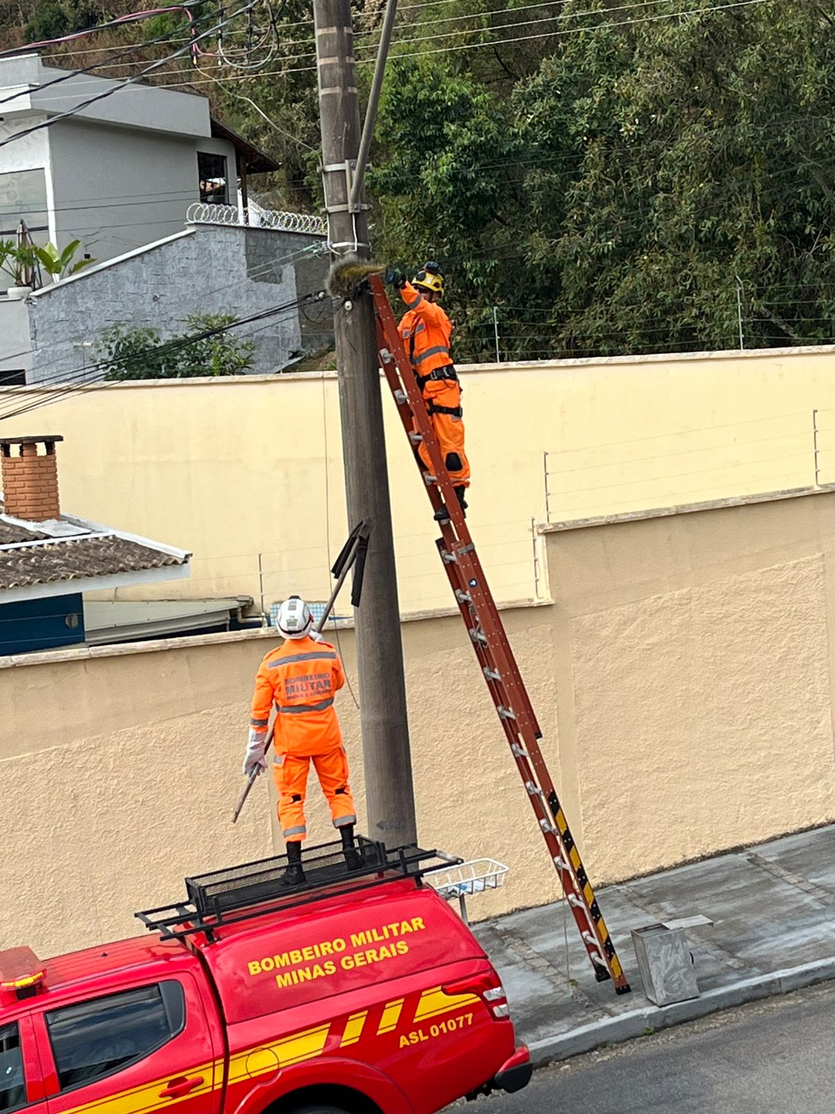 Na tarde da quarta-feira (01/10), o Corpo de Bombeiros de Poços de Caldas foi acionado para resgatar um ouriço que estava preso em uma linha de telefonia a aproximadamente quatro metros de altura, em um poste no bairro jardim Del Rey.