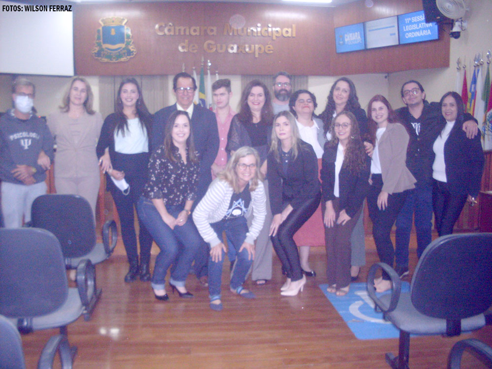 Durante a realização da 11ª sessão ordinária da Câmara Municipal de Guaxupé, na segunda-feira, 11 de julho, foi aprovada, por unanimidade de votos, uma proposição do vereador Paulo Rogério Leite Ribeiro concedendo uma Moção de Aplauso à primeira turma de alunos do curso de graduação em Psicologia do Unifeg.