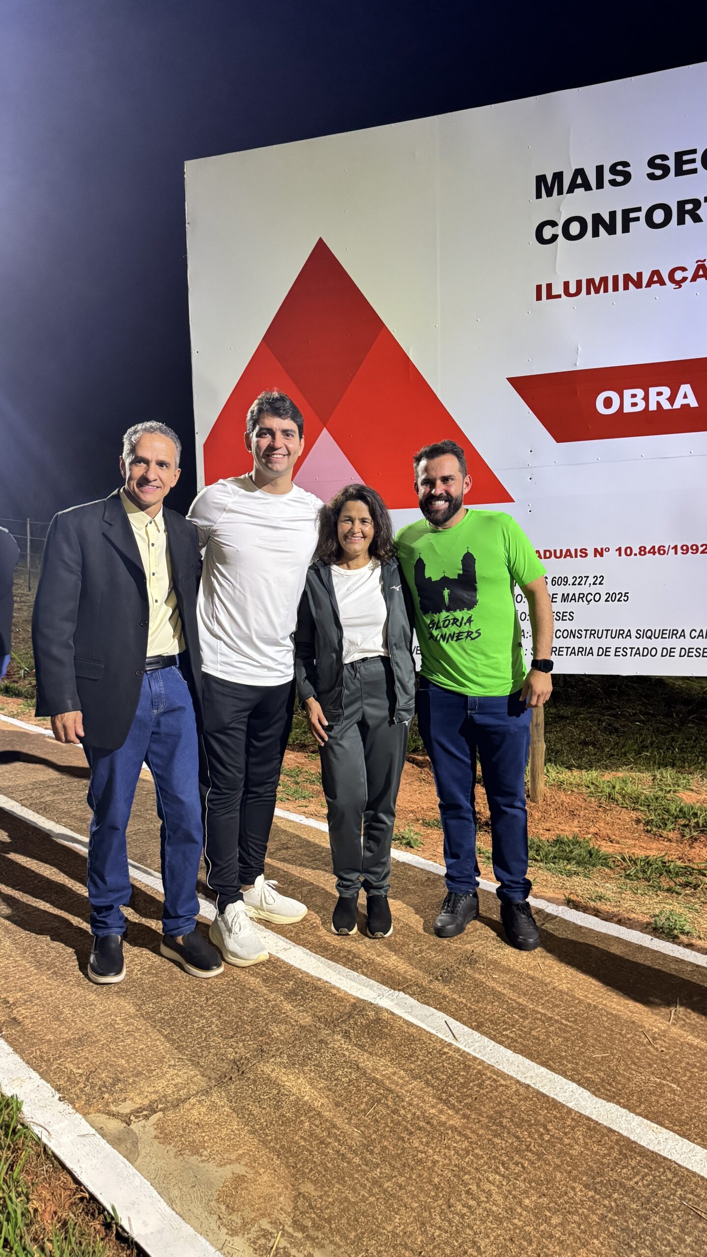 O deputado estadual Cassio Soares inaugurou na sexta-feira (27), ao lado do prefeito Eder Garcia, do vice-prefeito Belisca, de autoridades e da comunidade local, da inauguração da iluminação da Pista de Caminhada que margeia a rodovia MG-146, em São João Batista do Glória. A obra foi viabilizada por meio da destinação de R$ 631 mil em emenda parlamentar do deputado, com o objetivo de oferecer mais segurança e conforto à população que utiliza o espaço para práticas esportivas e de lazer.