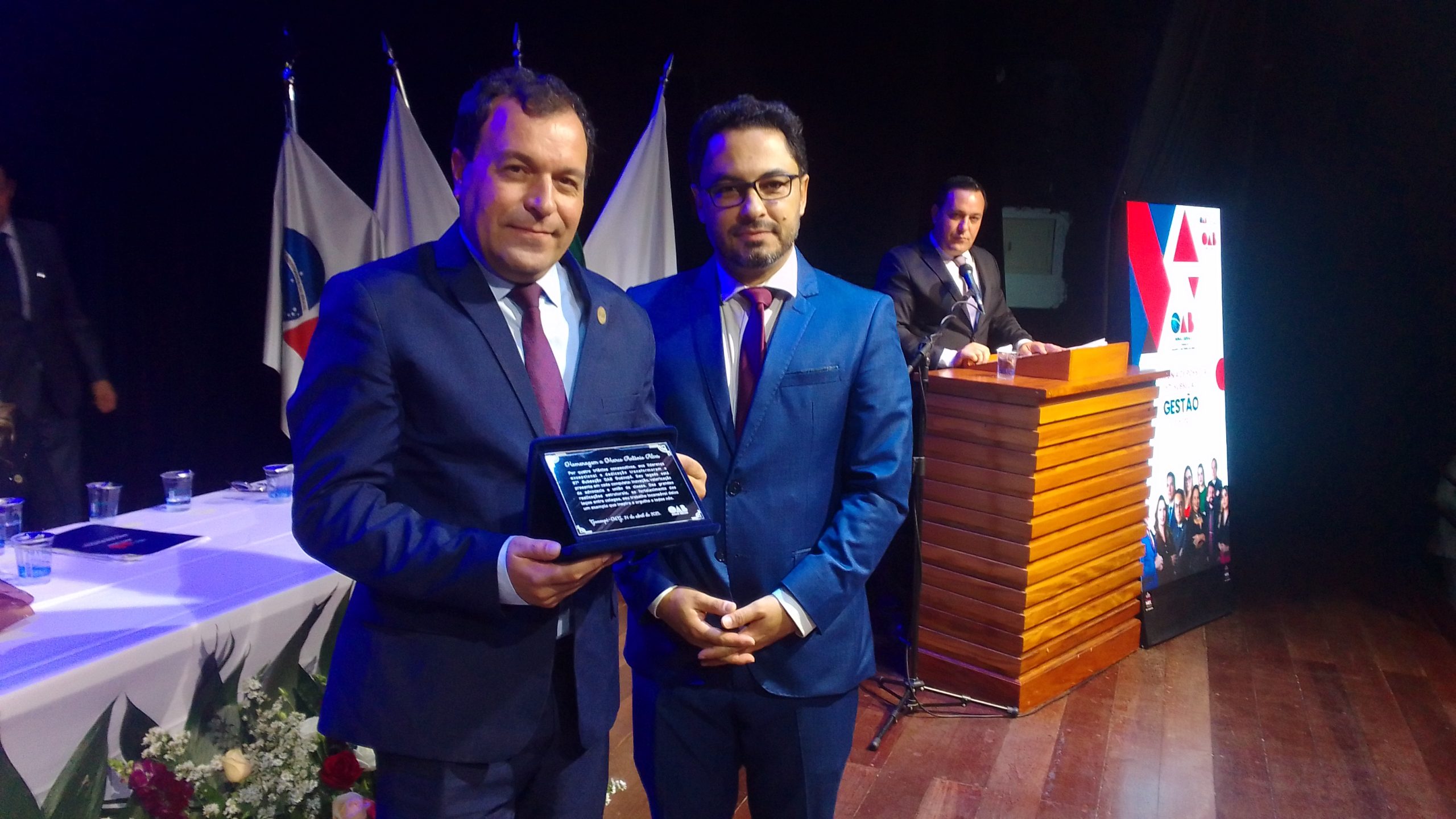 Encerrando o evento, o presidente empossado, Dr. Maylon Furtado Passos, prestou uma homenagem ao Dr. Marco Antônio Alves, que estava encerrando seu quarto mandato consecutivo, marcando uma fase ímpar de progresso e desenvolvimento na Subseção.